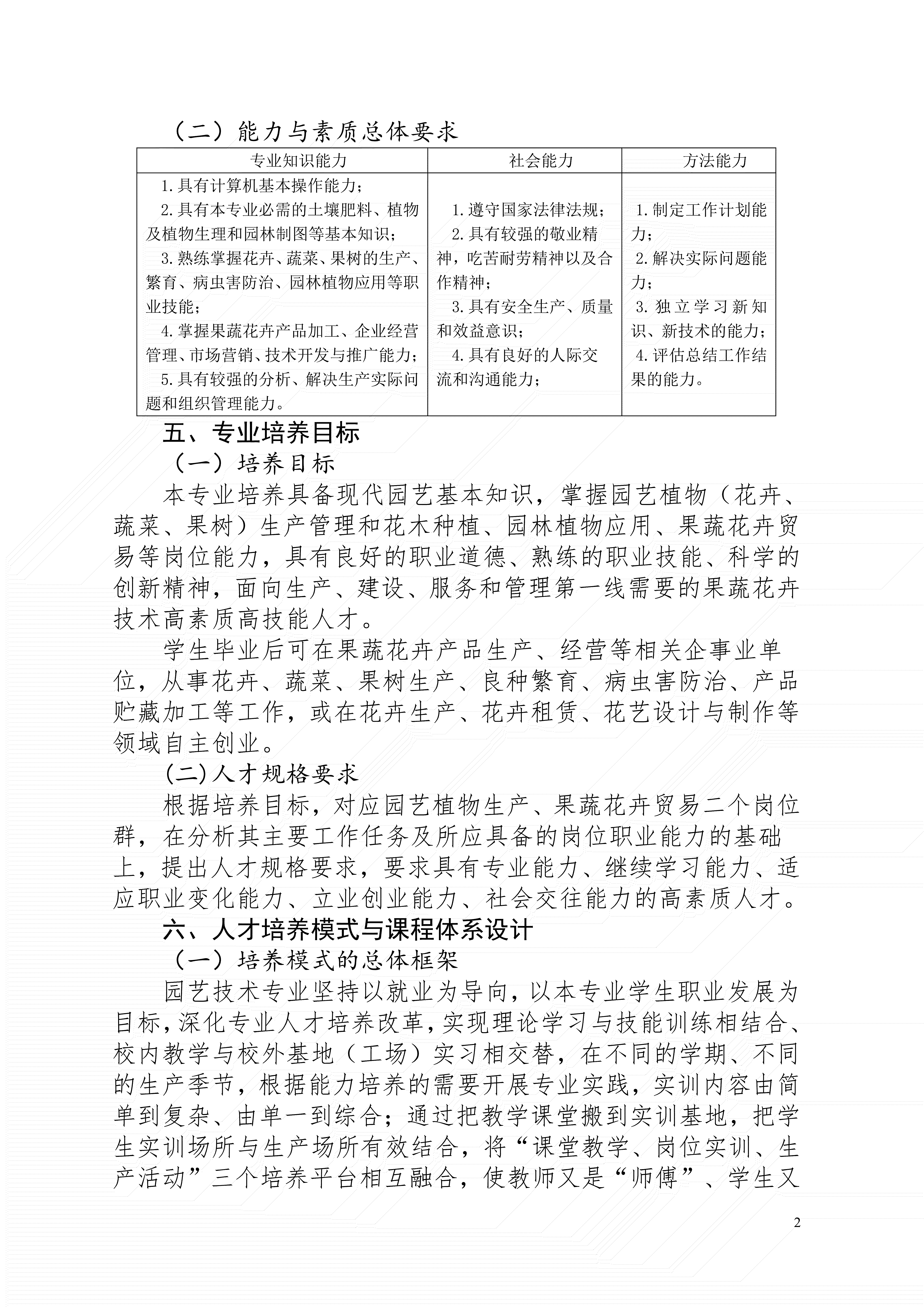 三明市农业学校园艺技术专业人才培养方案(2024)